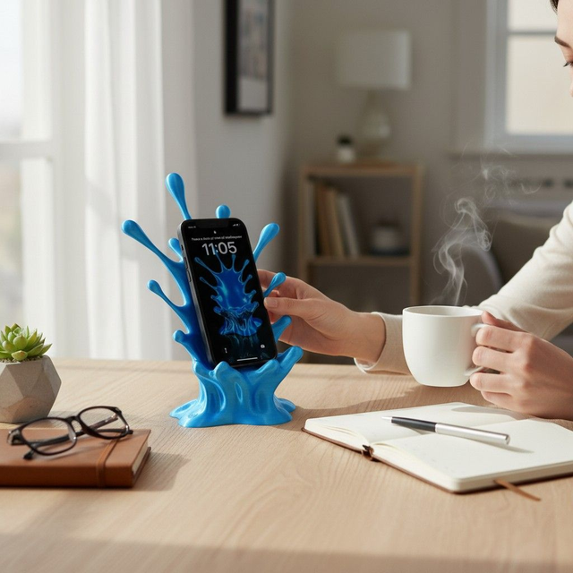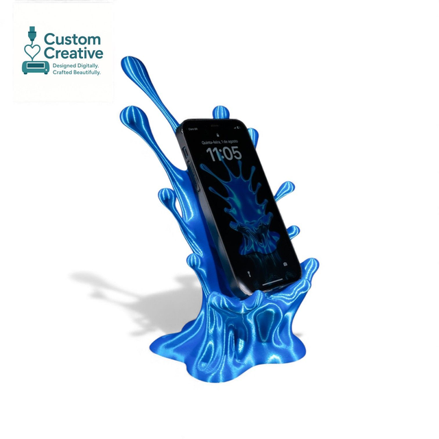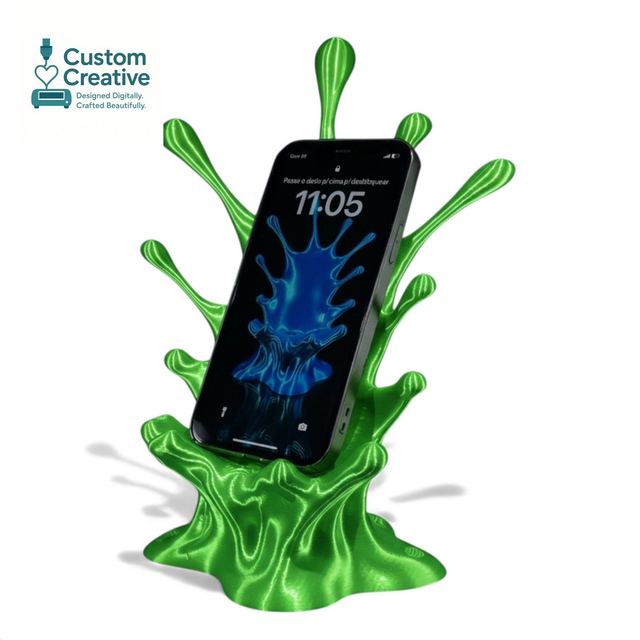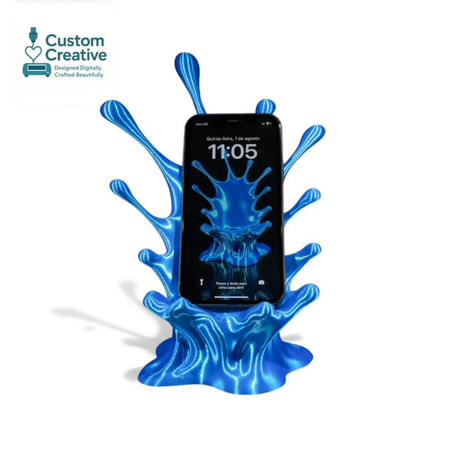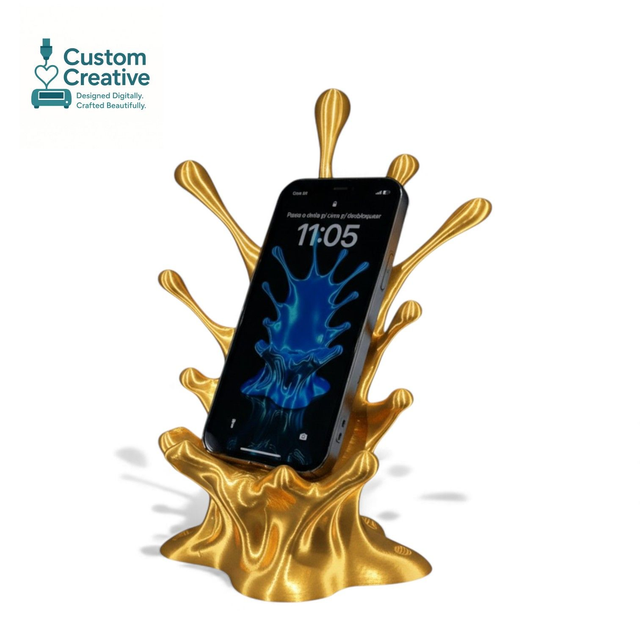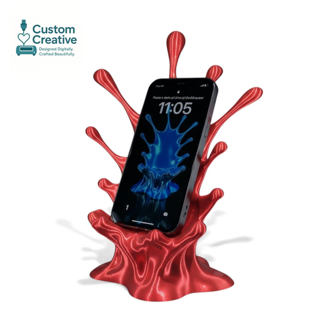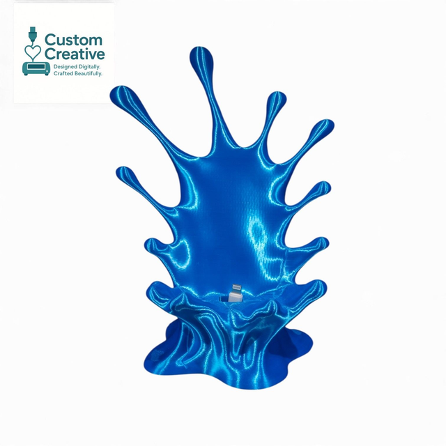 Bring your desk to life with this stunning 3D Printed Splash Phone Stand. Designed to look like a vibrant liquid burst frozen in motion, it’s the perfect mix of art and function. Each stand securely holds your phone at a comfortable viewing angle for gaming, watching videos, or using as a display.