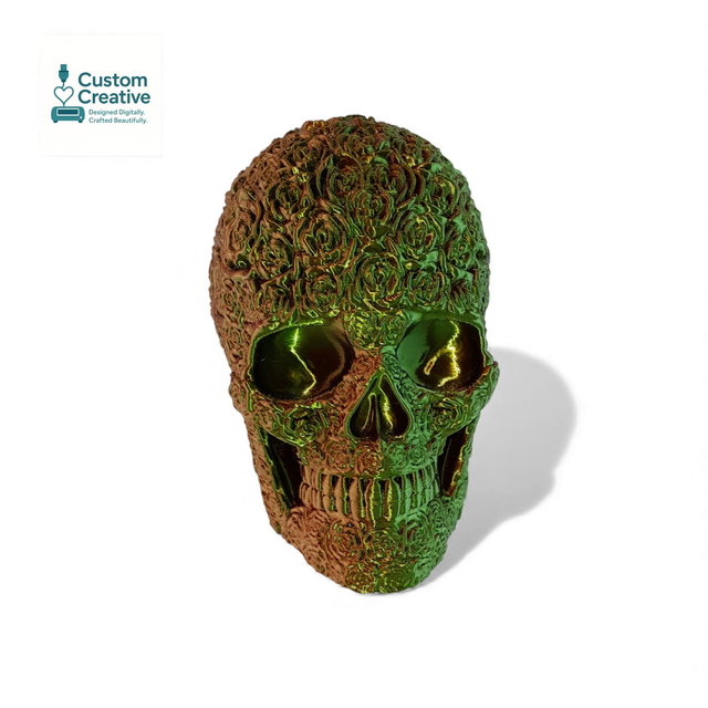 Introducing the Bloom of Doom Skull — a stunning 3D printed skull covered from top to jaw in beautifully sculpted roses. This striking design blends dark gothic vibes with elegant floral detailing, making it the perfect statement piece for shelves, desks, altars, or spooky home décor.